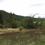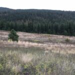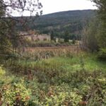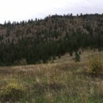 An open valley is between the south facing slope, and a north facing slope. The open valley appears disturbed with a high occurrence of invasive species including knapweed species (Centaurea), mullein (Verbascum thapsus), thistle species (Cirsium spp.), sulfur cinquefoil (Potentilla recta), white sweet clover (Melilotus albus) and chicory species (Cichorium spp.) (Photo 4). Native species within the open valley included thickets of common snowberry and Saskatoon. The north facing slope is more gradual relative to the south facing slope and consists of a dense interior Douglas fir forest (Photo 5).
