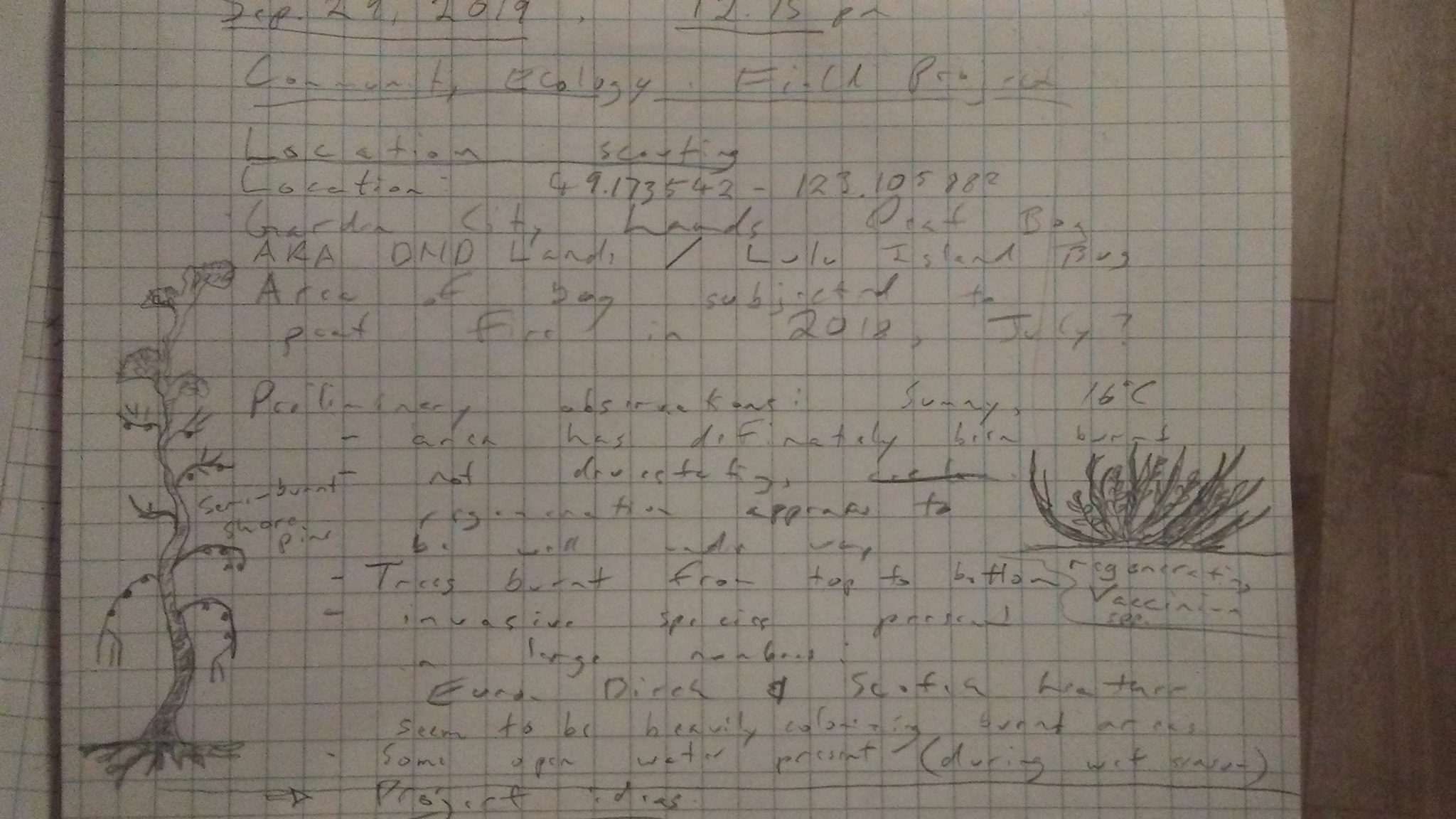 (Above image: field notes of my observations for Sep. 29, at Lulu Island Bog/ DND Lands.)