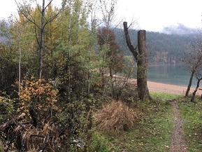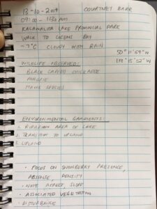 The three environmental gradients I am choosing to study in Cosens Bay include the riparian area of Kalamalka Lake, a transition zone between the riparian area and an upland area, and the upland area (Photo 1). Site 1 is the Riparian Area, Site 2 is the Transition Area and Site 3 is the Upland Area. On October 13, 2019 the three gradients were reviewed to observe the distribution, abundance and character of snowberry. On the day of the site visit, the temperature was approximately 7 degrees Celsius, cloudy with rain and observations were made between 9:00 am and 11:30 am.