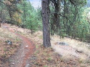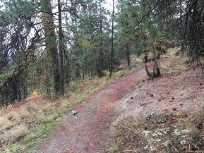 Site 3 (Upland Area) is located approximately 100 m upslope from Kalamalka Lake and snowberry is sparse to not present in this area (Photo 4). Shrubs that are present are small with less foliage and berry growth. The area is dominated by ponderosa pine, interior Douglas fir (Pseudotsuga menziesii), Saskatoon (Amelanchier alnifolia) and bluebunch wheatgrass. The tree canopy is open with little shrub cover. Other notable features in this area include relatively shallow soils with sporadic large boulders and the slope is steep, facing directly south.