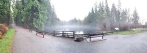 As I arrived at the Lake it was shrouded in mist, obscuring my view on the north side. As I continued to observe the plant life at the lake, the mist started to lift and that is when I noticed the hooded mergansers. The male was showcasing his display for the female. The female would start to come closer to the male then retreat. This was repeated many times, only interrupted by their diving underwater.Lost Lake is found on the eastern side of Mundy Park in Coquitlam, BC. It is a small lake in a dedicated forested (City park) surrounded by urbanization of residential housing and schools on all sides. Lost Lake is the smaller of the two lakes in Mundy Park, the larger being Mundy Lake. Lost Lake is special in that it is known to house a species-at-risk, Western Painted Turtle – Coastal Population and to provide possible habitat to other species-at-risk such as the red-legged frog and the pacific water shrew. It is a permanent body of water, that is usually still with an outflow on the southeast corner into Lost Creek that flows in a general southerly direction toward the Fraser River.