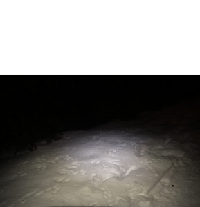 Moving forward, I made some more field observations this morning (December 24).  I walked the loop on the east end of my study area from 6:00-7:00am.  The temperature was -7 degrees, with a wind chill of -15 degrees, and the sky was overcast.  It was still dark and everything is always very quite at this time.  It is rare that I see anyone.  However, this is the time of day where I usually see the local fox and hares.  Unfortunately, I did not see either this morning, but I did see a high amount of hare tracks, of all different sizes (Figure 1).  I see a surprising amount when walking in the morning, as my headlamp allows for attributes to stand out.