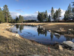 The study area is located within the Southern Interior Mountain Ecoprovince. The landscape is defined by rolling hills with vegetation dominated by dry coniferous forest and grassy understorey characteristic of the Interior Douglas-fir biogeoclimatic zone. The CCF consists of 2000 ha of crown land under provincial protection. The area provides a variety of recreational use opportunities although historical land uses included extensive forest harvesting and waste disposal. The CCF includes a number of groundwater fed lakes and ponds hosting rich and diverse biotic communities. The WGC was built in 2010 approximately 3 km south of the CCF. It covers 105 ha and encompasses 3 artificial ponds fed by groundwater wells and used for irrigation (Fig 2, 3, 4). Two of the ponds have recently been stocked with Rainbow Trout (Oncorhynchus mykiss).