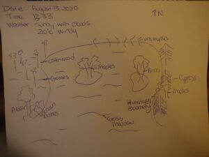 1. Some more information on the topography of the site, how natural the treed areas are and how big they are would help me better understand the site and potential questions you might ask. Also, the cottonwood stand is of interest – is this around a stream or wet area and how big is it?
