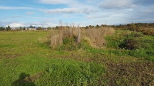 The area that I have selected to observe is the Garden City Land Teaching and Research Farm, currently leased by Kwantlen Polytechnic University (KPU) in Richmond BC. The land is primarily bog and open for citizens to walk. It also has 8 acres of farmland run by the Sustainable Agriculture Program of KPU. The specific location I chose is between the untamed bogland and the organically farmed production land. I have selected an area of large stretch of land on the southern side. This area is generally flat but has been specifically modified by the professors at KPU to do their ‘Greenhouse Gas Plot’ research project; this entailed digging down to the bog in segments and leaving other segments with the mineral soil layered top. There is a notable gradient between the two different plots. I visited October 19 at 16.00 during a cool and dry day, however the week prior saw heavy precipitation. I observed that there was a denser and more diverse group of plants closer to the peat. I observed that the scentless chamomile was very abundant on the top soil and very scarce nearer the bottom of the pits, and that clover was prominent throughout but more abundant at the bottom of the pits. overall, there was more abundance and diversity at the bottom of the pits. I am not sure whether to focus on a specific plant or where there is more diversity. Before I collect samples I will be mowing the site to simplify the observation of my sample group (TBD).