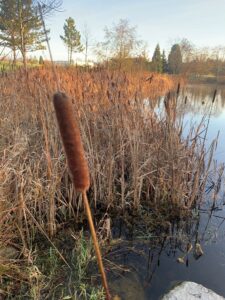 Both options have potential for sure. I think by cottontails you mean cattails based on your journal drawing. This is the time of year that the cattails are likely spreading seeds, though you must be on the lower mainland so far because in the interior it is probably too late. My one concern is whether you are too late or if there is enough variability in the number of cattails that have started to brake apart and those that are still together. You will also have to put some thought into how to measure how ‘crowded’ different areas are and how large of a quadrat to use.