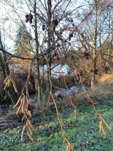 As I noticed the role of the pine trees in this pattern with the cottontails, I saw that they were in the process of making and dropping pine cones. Some trees had many early pinecones and some trees had many late stage pinecones in a way that varied greatly from tree to tree. I thought perhaps that they followed a similar pattern as the cottontails in terms of crowding and competition, but this did not seem to have any recognizable pattern. However, because this visit was done during clear skies, I was able to see how the sunlight hit the trees for most of the day and the path it would take across the sky over the daylight hours. That is how I noticed that the trees that got more sunlight seemed to have more early stage pinecones and the trees blocked by the shade of other trees as well as the branches that got less direct sunlight had more of the late stage pinecones. I hypothesize that decreasing sunlight is a trigger that signals to the plant that it is winter and time to shed the non-useful parts of the tree, triggering the shift from early to late stage pinecones. I predict that the trees that receive the most direct sunlight will shift into late stage pinecones later in the season that those that do not receive as much direct sunlight. The response variable would be the ratio of early to late stage pinecones (continuous) and the explanatory variable would be sunlight amount (low light versus high light) (categorical).