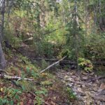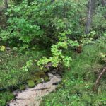 The area I have selected to study is 2 acres total radiating out from the creek bed and up both sides of the valley. The creek bed is mostly a rock base with sediment at the base of the waterfalls but it does not continue down the creek. The edges of the creek are quite steep as spring flooding erodes a deep scar that it left nearly empty by this time of year. Immediately surrounding the creek is grass, bamboo, and medium sized shrubbery with many types of berries visible. Scattered amongst this is a variety of medium and large trees of varying types.
