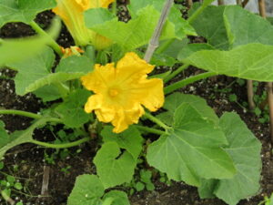 Figure3&4: Pumpkin plants flowering, on the right. However, as can be seen on the left some are starting to change colour, drying.