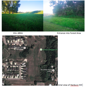 The area I have selected for my project is in the middle of the prairies in Brandon, Manitoba. The area’s location I have chosen has a few natural trails, a creek, and two distinct terrains with an immediate ecotone between the two. The first terrain is a forestry area with a gentl, slow flowing creek running down the middle, immediately adjacent to it is the second terrain a not-very steep hilly open grass field. Both these terrains are within an area classified as Hanbury Hill Park and are classified as a recreational-protected area. The Park is about 200 meters from a residential road.