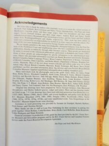 According to the Flow chart for discriminating among different sources of information, Plants of Coastal British Columbia including Washington, Oregon and Alaska begins to qualify as a research material because the majority of contributing authors are affiliated with departments of speciality within Canadian universities or the British Columbia Forest Service (p. 527). I did not find any in text citations, however, there is an extensive list of References Cited, as well, direct acknowledgement is given to “knowledgeable Aboriginal botanists from the First Nations of the Northwest Coast and neighbouring areas…” (Pojar and MacKinnon, p. 7). Beyond the editing of Pojar and MacKinnon, there was a technical review of portions of the text by George Douglas and Chris Marchant (p. 7). Because this compilation is not a scientific study and, therefore, does not include a “methods” or a “results” section, I believe Plants of Coastal British Columbia including Washington, Oregon and Alaska to officially be an academic peer-reviewed review material. The following pictures are meant to provide the documentation needed to support my designation of Plants of Coastal British Columbia including Washington, Oregon and Alaska as an academic peer-reviewed review material because they show the text claiming technical revision and reveal the qualifications of the authors. Unofficially, I have many years of pouring through the water resistant pages of Plants of Coastal British Columbia including Washington, Oregon and Alaska, considering it and others in the series dedicated to the different ecoregions of British Columbia, to qualify as researched reference material.